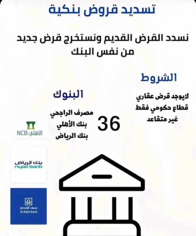 | تسديد قروض وتحويل من بنك الى اخر | خصم 40% لجميع عملائنا في غرب الرياض |