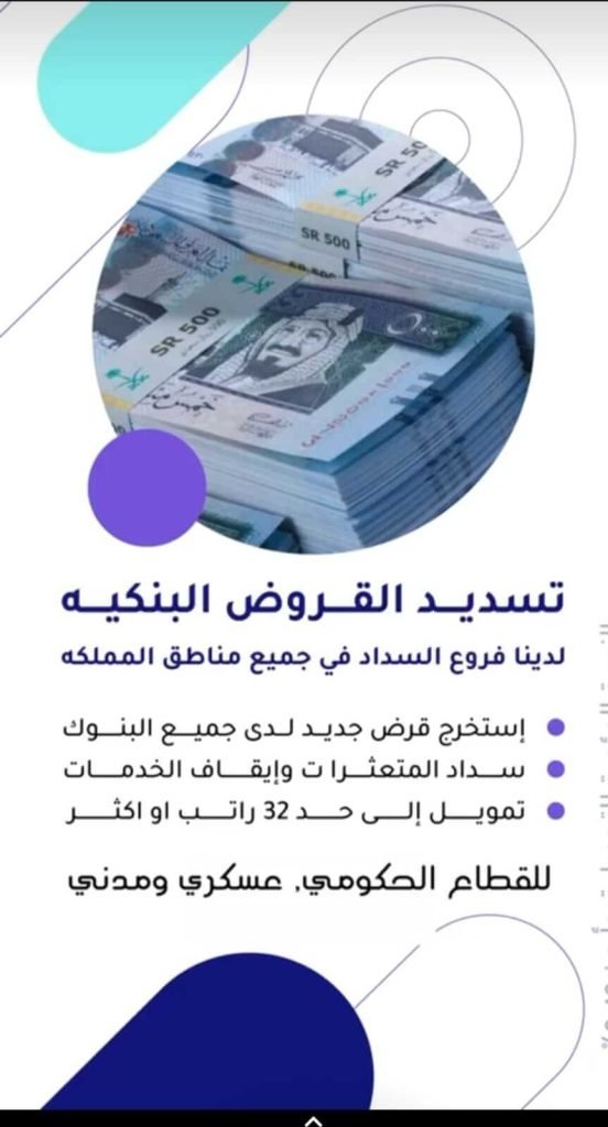 | تسديد قروض واستخراج قرض جديد | خصم 50% لجميع عملائنا في شرق الرياض |